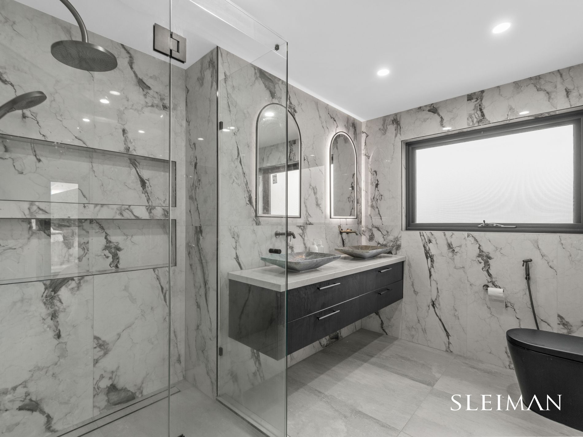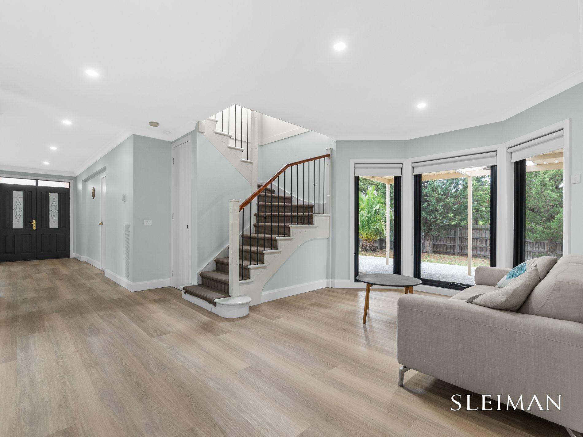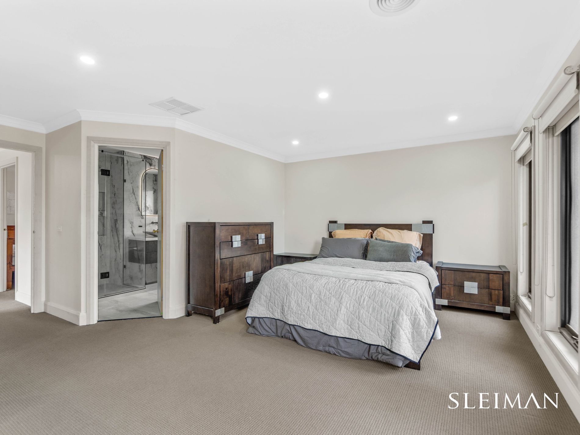 Positioned within one of Hillside's most established and tightly held pockets, this exceptional residence delivers a comprehensive high-end renovation where architectural precision meets everyday family functionality. The home comprises four generous bedrooms, headlined by an oversized master suite complete with a spacious walk-in robe and beautifully renovated ensuite. The remaining bedrooms are serviced by a designer central bathroom finished with full-height marble-inspired tiling, frameless glass showers, floating vanities and refined fittings. Upstairs, a dedicated retreat provides valuable second living space, ideal as a children's zone, study area or private escape.